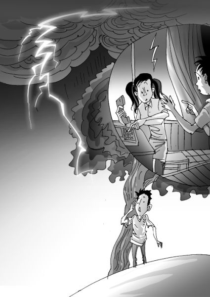 3.如果在雷電交加時,頭、頸、手處有螞蟻爬過的感覺,頭發豎起,說明將發生雷擊,應趕緊趴在地上,這樣可以減少遭雷擊的危險。另外要去掉身上佩戴的金屬飾品等。