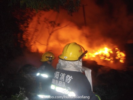 7月8日凌晨4時許,岳陽市云溪區一家塑料加工作坊發生火災,堆放的下腳料猛烈燃燒并引燃了周圍的樹木。接警后,救援人員迅速趕往現場,一邊撲救一邊用火鉤等工具對堆垛進行清理,避免內部余火復燃。