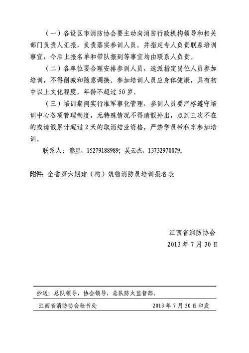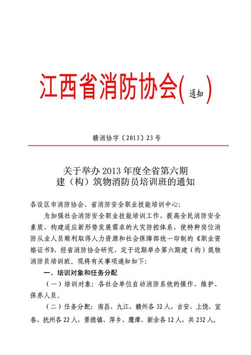 江西消防協會關于舉辦2013年度全省第六期建(構)筑物消防員培訓班的通知