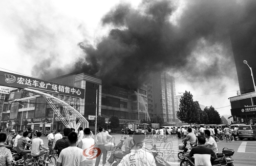 8月17日上午9點20分,鄭州宏達國際車業廣場突發大火,最先起火的是位于4樓的一個商鋪,很快大火蔓延開來。消防隊接警后迅速趕往撲救。