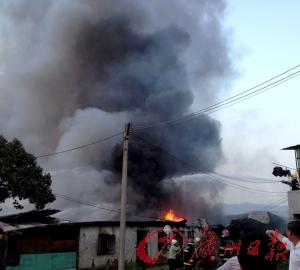 消防接警后迅速趕往撲救,由于著火的倉庫內(nèi)堆放的是天那水的化學(xué)品,因此,盡管數(shù)十名消防官兵在現(xiàn)場奮力撲救,但是大火仍然燃燒得非常旺,大量的明火往上躥起有數(shù)米高。而大火產(chǎn)生的濃煙躥出有數(shù)十米高。經(jīng)過消防官兵的奮戰(zhàn),截至昨19時(shí)30分左右大火基本被撲滅,過火面積約150平方米。