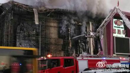 五時(shí)許到現(xiàn)場(chǎng)時(shí)只有商場(chǎng)西側(cè)冒濃煙,六時(shí)十分左右,中間開始出現(xiàn)明火,隨后向東側(cè)蔓延。