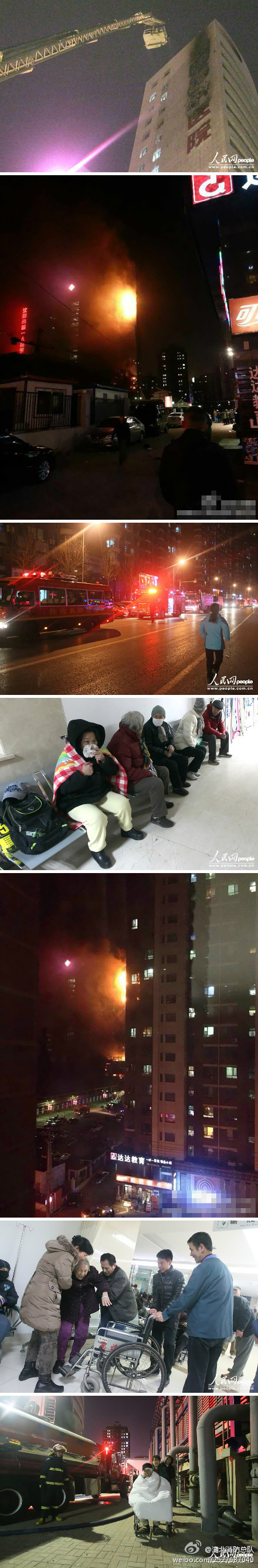 11月28日晚7時,沈陽市第一人民醫院大樓樓頂大字著火,醫院緊急疏導病人。