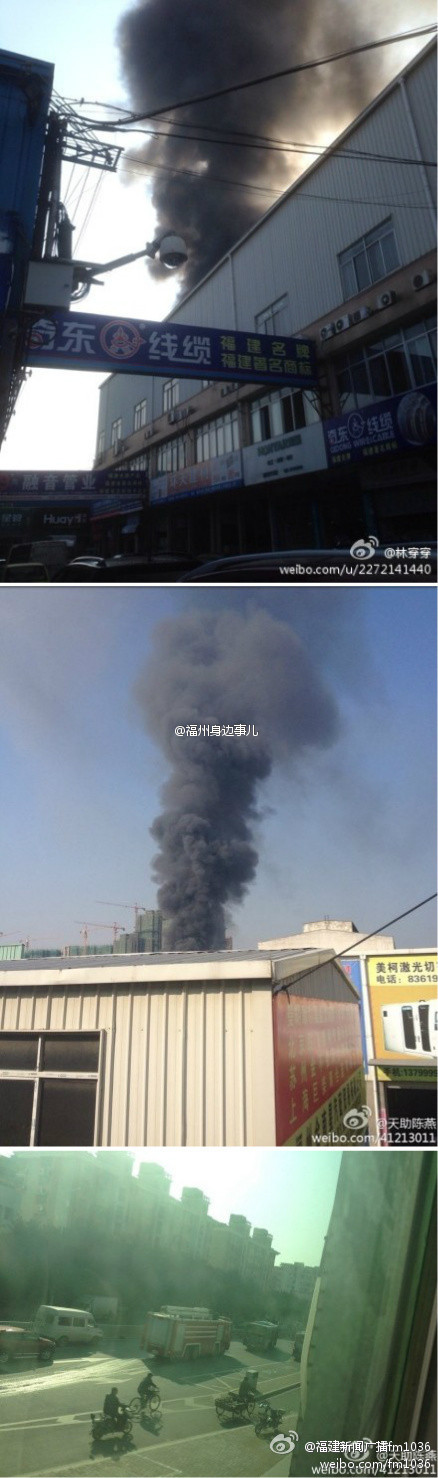 福州晉安區福新東路亞太汽配城附近一倉庫火災,現場黑煙沖天,火勢很大。