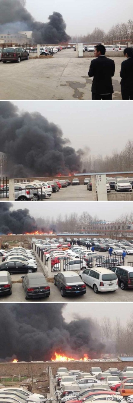 網友消息:鄭州花園路著火了,濃煙滾滾,天都黑了!花園路迎賓路新興大眾樓后的一個停車場地發生火災,大量名爵牌轎車被燒毀!