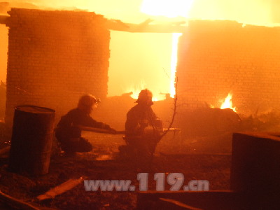 到達現場后,滾滾的濃煙彌漫著整個木材加工廠,現場的火勢正處于猛烈發展階段,加上大風天氣帶來的惡劣影響,火勢正在迅速地蔓延,根據現場情況,指揮員迅速向指揮中心報告現場情況并請求增援,并出兩支水槍對火勢進行壓制, 20分鐘后,七里橋中隊和城東中隊的7車23人到場支援,迅速出動4支水槍對火勢進行壓制。
