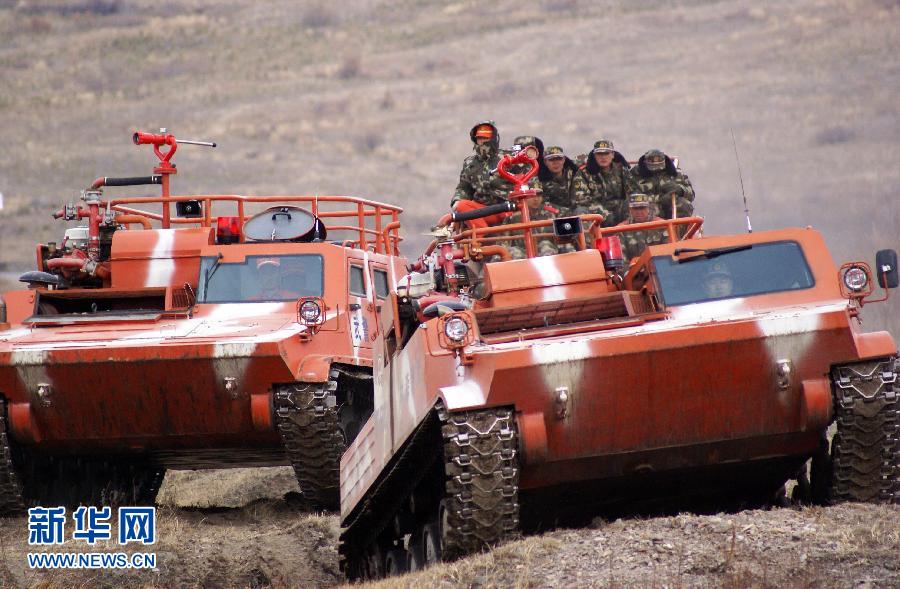 昨天,武警黑龍江省大興安嶺地區森林支隊組織“滅火坦克”駕駛員在野外進行訓練。