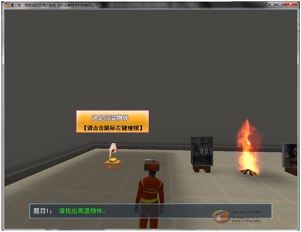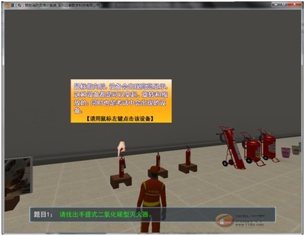 學習重點:教學并感受滅火過程。場景中有一堆火,學員使用三類滅火器任意一種將火撲滅即可。
