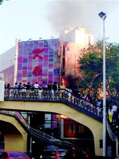昨天傍晚17點左右,黃石市貿易大樓發生火災,遠信網吧焊門牌時著火,殃及隔壁“K歌王”門樓。