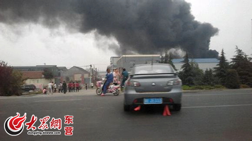 今天上午9點半左右,位于東營廣饒陽河橋岸邊的廣饒大王華達化工有限公司的潤滑油廠發生火災。
