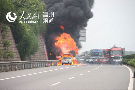 福建方向G15沈海高速公路平陽段貨車自燃爆炸