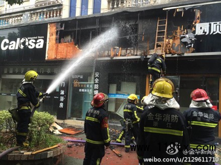 今天早上,金華江濱小區門口一廚衛店突發火災。