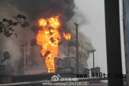 昨天上午9點左右,安陽市北外環恒坤礦產品公司一過濾煤氣罐體內壁殘余煤焦油著火。