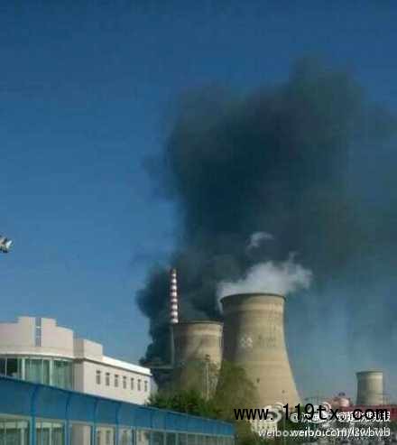 今天上午10點46分左右,沈陽沈海熱電廠脫硫塔發生火災。