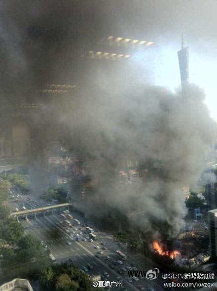 起火地點位于廣州客村立交附近工地宿舍,在小蠻腰附近。現場黑煙滾滾,火勢迅猛。
