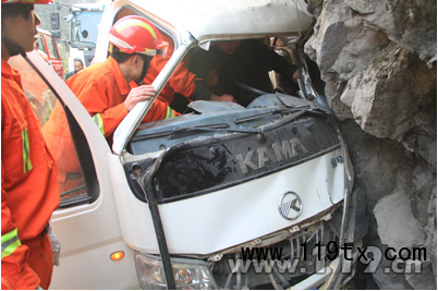 209國道小貨車撞向山體司機被困