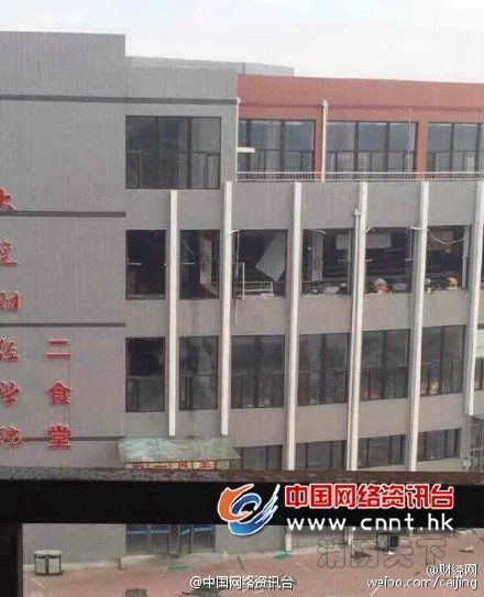 據(jù)學(xué)生說當(dāng)時(shí)爆炸聲音很大,現(xiàn)場(chǎng)是一片狼藉,地上滿地都是玻璃碎片。