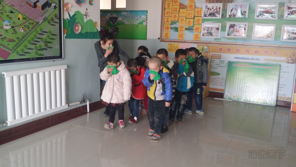 下午16:30左右,老師和幼兒正在教室專心地進行教學活動的時候,忽然警報聲響起,各班教師迅速地按照緊急預案的疏散路線帶領幼兒拿起濕毛巾,捂住口鼻,貓著身子,從兩邊樓道快速有序地撤離到操場上,并有專門負責老師清點人數。整個演練過程歷時二分半鐘,做到了安全、快速、有序。