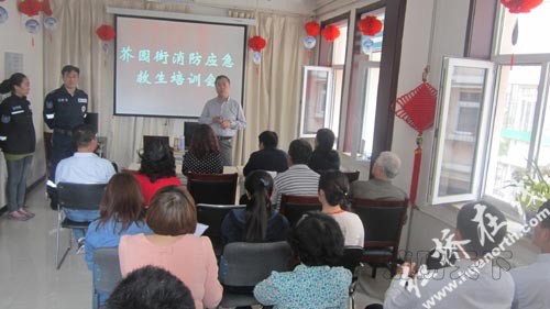 為增強社區管理人員及居民的防火意識和消防知識,預防和減少各類火災事故的發生,提高社區管理人員及居民的防火意識,日前,紅橋區芥園街辦事處特邀天津藍天救援隊的教官,在隆春里社區會議室開展了一場消防應急救生培訓會,芥園街辦事處領導、各社區居委會綜治主任、物業專員及物業公司人員參加了本次培訓。