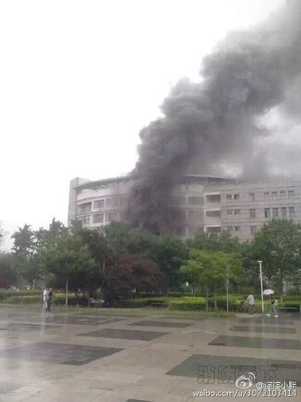 網友消息:今天早上,河南大學行政樓突發(fā)火災。