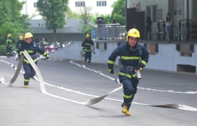 按照演習的假設,由于起火單位內部組織自救導致報警時間晚,火災難以在短時間控制和撲滅,支隊全勤指揮部迅速向總隊指揮中心報告,省消防總隊全勤指揮部率長沙、湘潭支隊到場后,命令長沙、湘潭支隊利用高噴車加強對起火建筑東、西兩側進行冷卻保護,株洲支隊增設水帶干線,設置水炮陣地,同時減少內攻人員,預防起火建筑倒塌。
