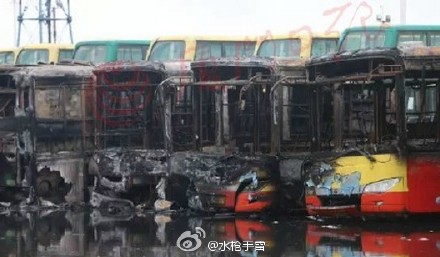 事故造成8輛公交車被燒毀、3輛公交車被燒壞。