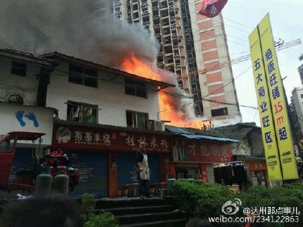 今天中午,達州大竹縣縣政府對面十字街一居民房發生火災。