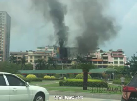 網友消息:今天中午,梅州興寧文化廣場一廣告牌起火。