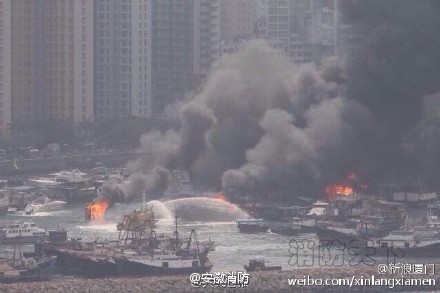 昨天中午2點左右,香港維多利亞港筲箕灣避風塘發生三級火。