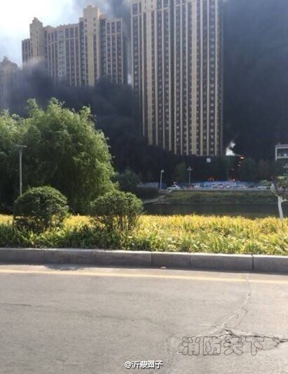 今天下午2點半左右,臨沂涑河南街六路一高樓突發大火。