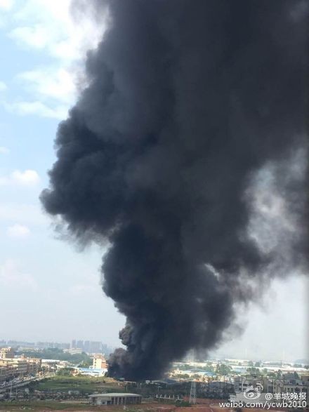 今天中午1點半左右,番禺南村鎮南村村一泡沫廠房發生火災。