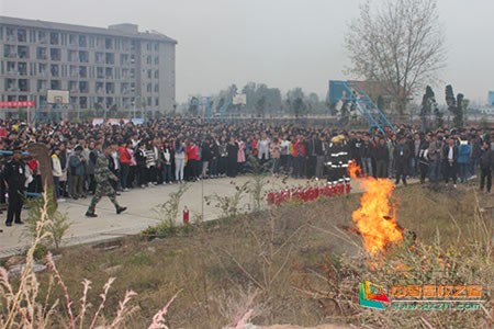 每年11月9日是全國“11·9”消防日,11月是法定的消防宣傳月。2015年11月3日,漢中職業技術學院在校園籃球場舉辦了2015年消防安全宣傳和消防滅火演練活動。學院副院長楊劍斌、學生處處長袁力、后勤處處長羅貴斌、保衛處處長周海新以及各系學管辦主任、保衛處全體工作人員、學院保安、公寓管理員和學生代表1000余人參加了活動。漢中市公安局漢臺分局宗營派出所警官和漢中市消防中隊武警官兵應邀參加了活動并做講解和示范?;顒佑芍芎P轮鞒帧?br />