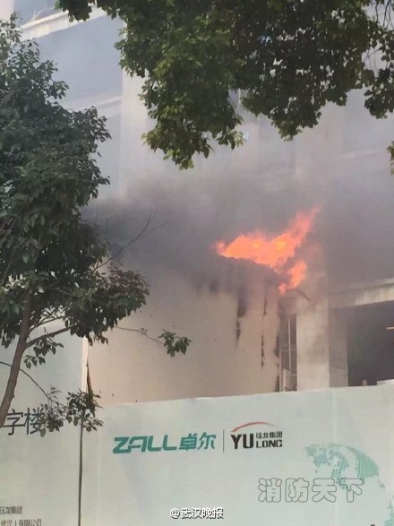 網友消息:今天下午4點半左右,武漢西北湖新世界國貿大廈附近工地著火。