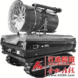 我是3天前來到合肥的,和我一起來的還有3個小伙伴,除了另一臺水炮消防機器人外,還有兩臺風炮機器人。關于它嘛,顧名思義,就是出強風,排濃煙用的,同時還配有泡沫炮,可以直擊95米內的燃燒物。