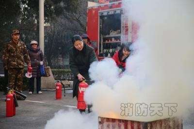 1月12日下午,北京市西城消防支隊走進解放軍報社,為報社官兵、文職人員及家屬進行消防安全培訓,開展消防演練,幫助解放軍報社開展消防安全檢查,消除火災隱患。在演練環節,消防宣傳員詳細講解了滅火器、消火栓的使用方法和疏散逃生的技能技巧,并進行了實地演練。圖為現場群眾實地體驗滅火器的操作。