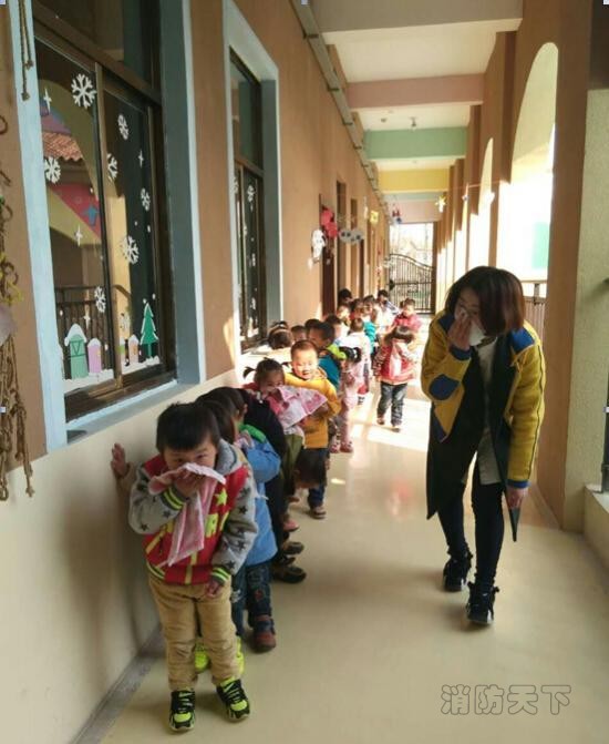 演習活動前,教師針對幼兒火場逃生、救援疏散等事項,精心設計了消防演習方案,并就每個樓層、教室的分布,以及火災發生時應該注意的事項進行了說明。消防演習正式開始時,幼兒園里響起了緊急集合的報警聲。只見小朋友們在老師的指導下,雙手捂著口鼻快速有序的從樓梯和教室邊門逃生。在老師的帶領下安全的疏散到空曠的操場上,整個演練活動緊張有序。