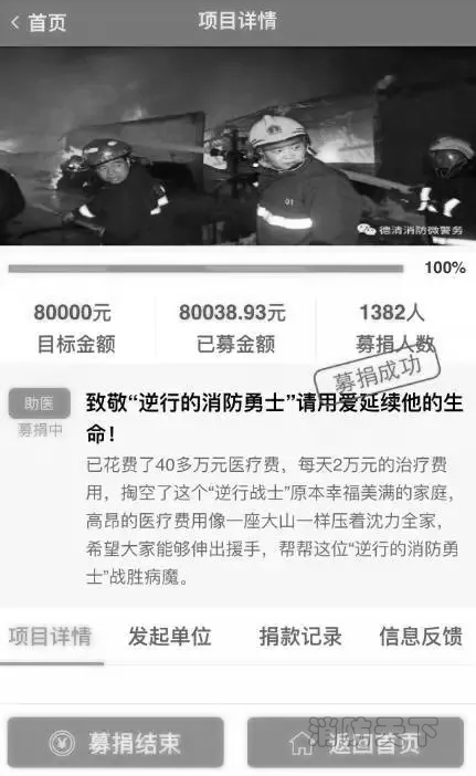沈力病重的消息,很快引發(fā)了無數(shù)湖州市民的關(guān)注,從12月中旬開始,湖州人的微信朋友圈就被這位“逆行的消防勇士”刷屏了。大家紛紛為他表達祝福,在得知為了治病,家里的積蓄已經(jīng)花光的消息時,大家都表示愿意幫和他共度難關(guān)。很快,沈力的親朋同事還有與他有過接觸的企業(yè)家們紛紛解囊相助,送去了10余萬元的愛心捐款。