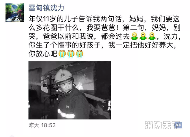核心提示:2017年12月24日,年僅37歲的沈力因腦部惡性腫瘤安靜地離開了人世。沈力是德清縣雷甸鎮(zhèn)消防綜合應(yīng)急救援隊隊長,6年來,沈力帶領(lǐng)