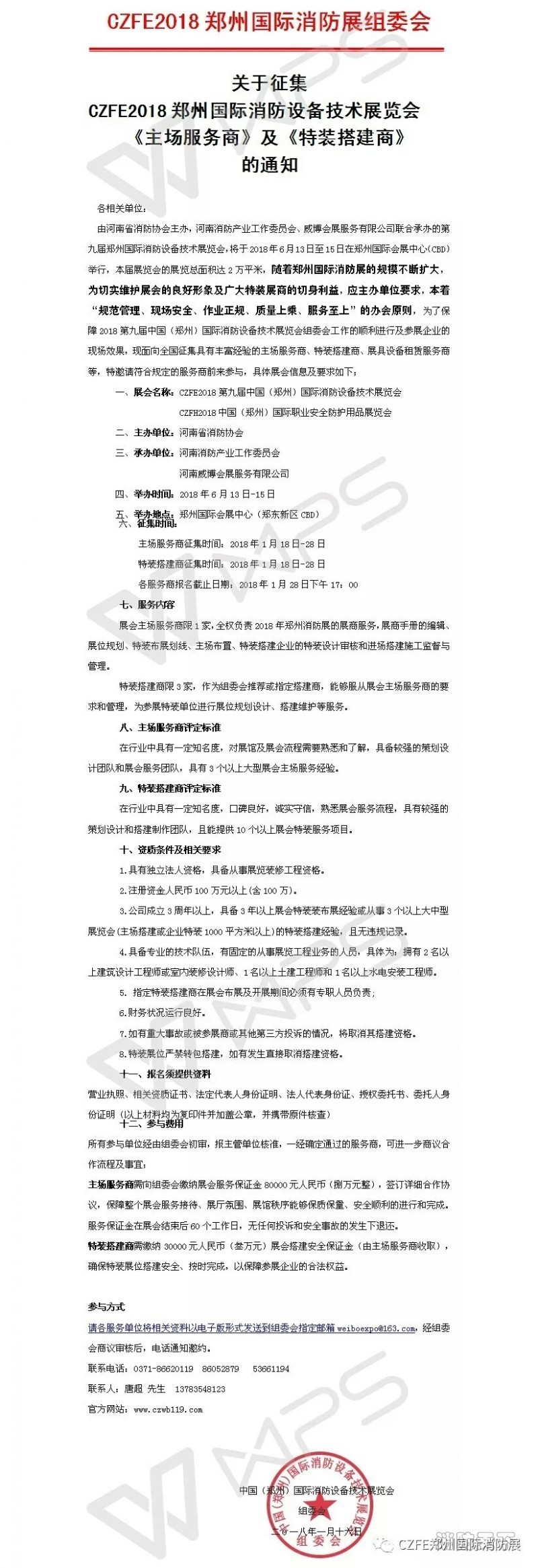 關(guān)于征集 CZFE2018鄭州國(guó)際消防設(shè)備技術(shù)展覽會(huì)