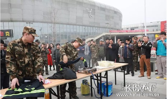 消防戰士為觀眾展示滅火救援裝備。消防支隊供圖