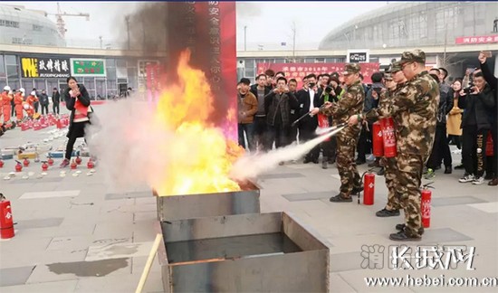 活動現場劃分了五個功能區同步開展宣傳活動:“集中銷毀區”由消防戰士對1000余件假冒偽劣消防產品進行集中銷毀;“互動體驗區”現場設置油池,