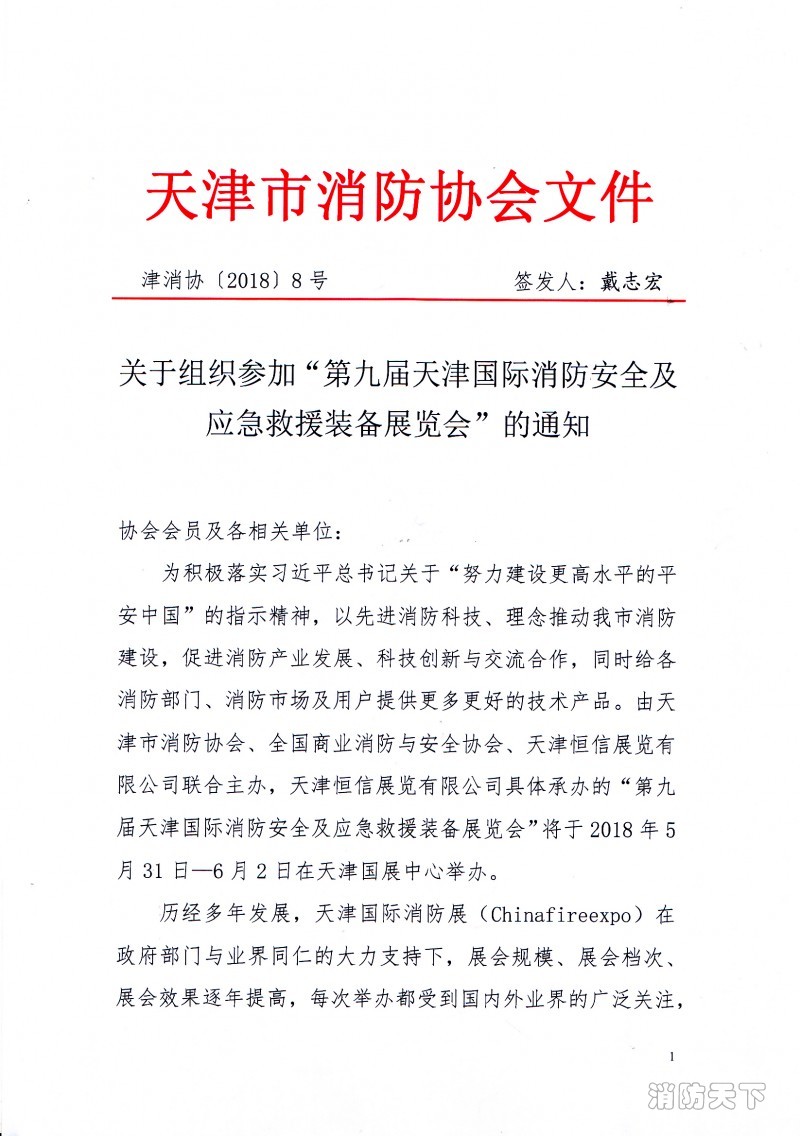 天津市消防協會-關于主辦2018第九屆天津消防展的通知