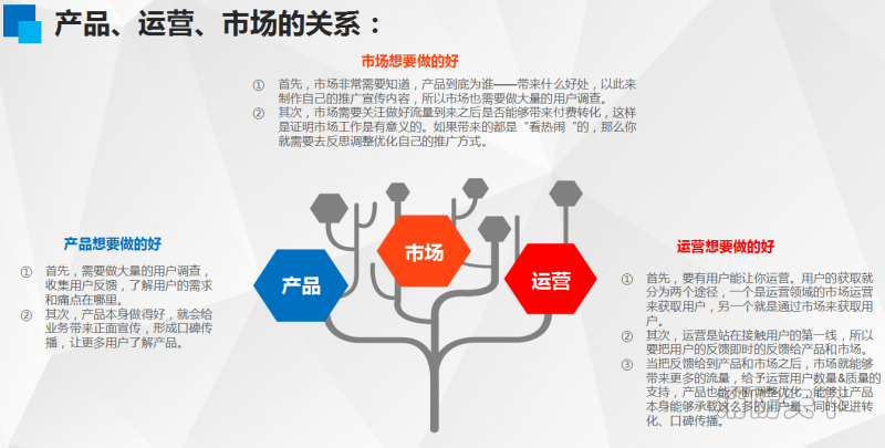 CEO李立彪先生在分享中對產品、市場、運營間的關系這樣比喻道,說它們就像是一顆樹上扭在一起的枝干,雖然側重點不同,但都難分彼此,共為一體,缺一不可。