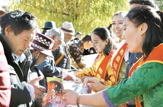 11月6日上午,自治區第28屆“119消防宣傳月”活動在宗角祿康公園舉行。圖為工作人員在為市民發放消防知識宣傳單。本報記者貢嘎來松攝