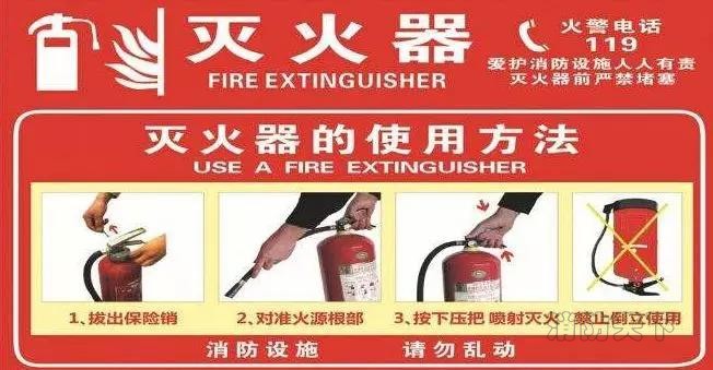 另外,如果是使用液體滅火器記住滅火時要對準火源根部進行掃射,如果使用二氧化碳滅火器的話,要注意佩戴防凍手套,室內要佩戴空氣呼吸器。