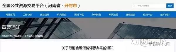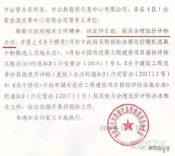 2018年11月7日,河南開封發布《關于取消合理最低價評標的通知》