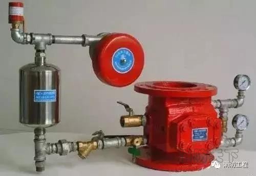 2. 濕式報(bào)警閥與水流指示有些不同,如果噴淋管道中如果水在流動,管道原有的靜壓會發(fā)生變化,會激發(fā)水力警鈴報(bào)警(它的原理可以參看一些閥門說明書),且壓力開關(guān)動作,從而來啟動噴淋水泵。