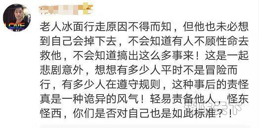 得知老人落水原因及犧牲消防員年僅23歲后,網(wǎng)友一邊痛心,一邊卻又出現(xiàn)了指責(zé)質(zhì)疑的聲音,有人指責(zé)老人對(duì)自己不負(fù)責(zé),還有人認(rèn)為消防員這樣做不值: