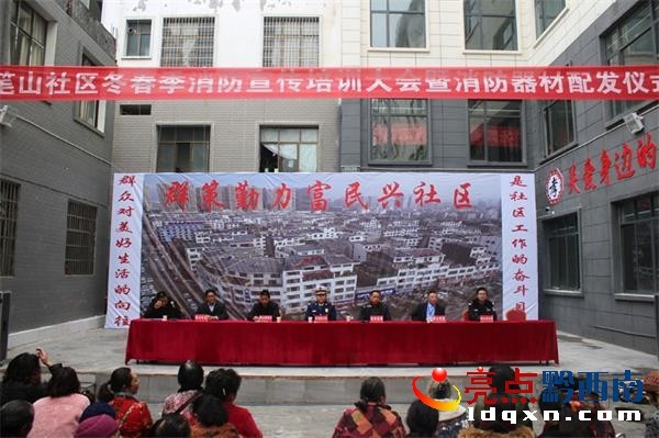 興義市桔山街道辦事處筆山社區(qū)冬季消防宣傳培訓(xùn)暨消防器材發(fā)放儀式。