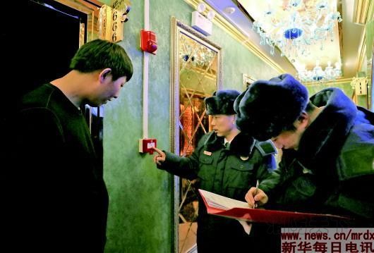 ▲2月5日,黑龍江漠河市的消防員們在一家娛樂場所檢查消防設施。新華社記者王春雨攝